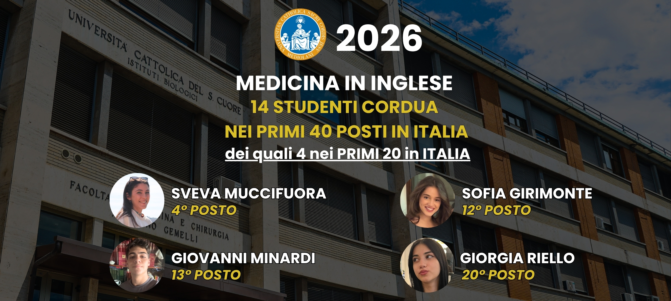 Celebriamo con grande orgoglio gli studenti Cordua ammessi all’Università Cattolica del Sacro Cuore in Medicina in lingua inglese: